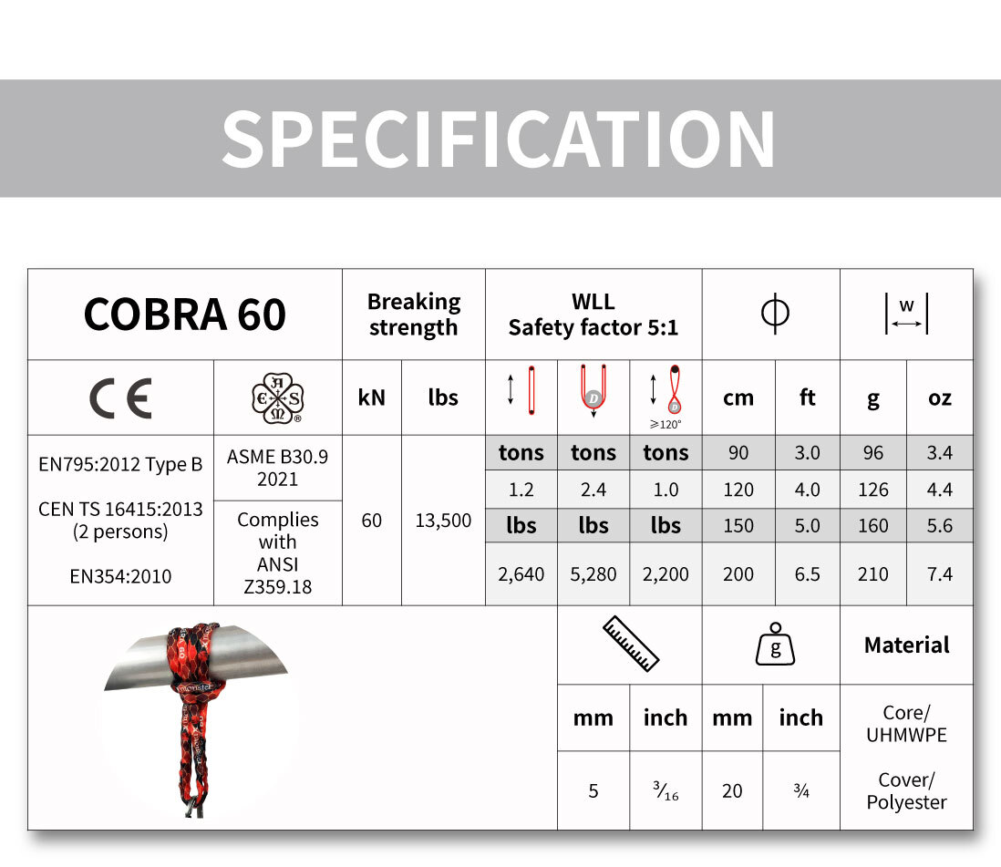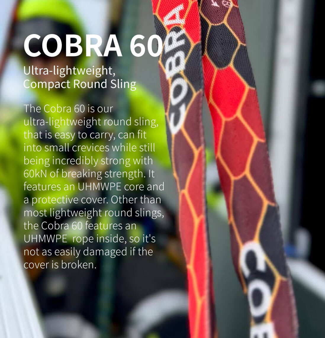 The Cobra 60 is our ultra-lightweight round sling, that is easy to carry, can fit into small crevices while still being incredibly strong with 60kN of breaking strength.