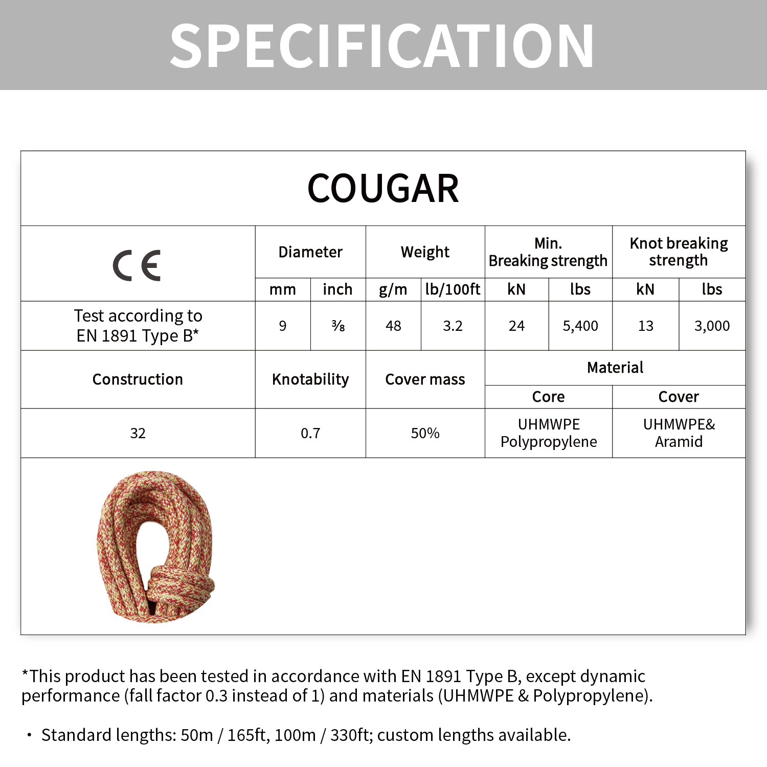 The Cougar is a highly durable and lightweight rope.
