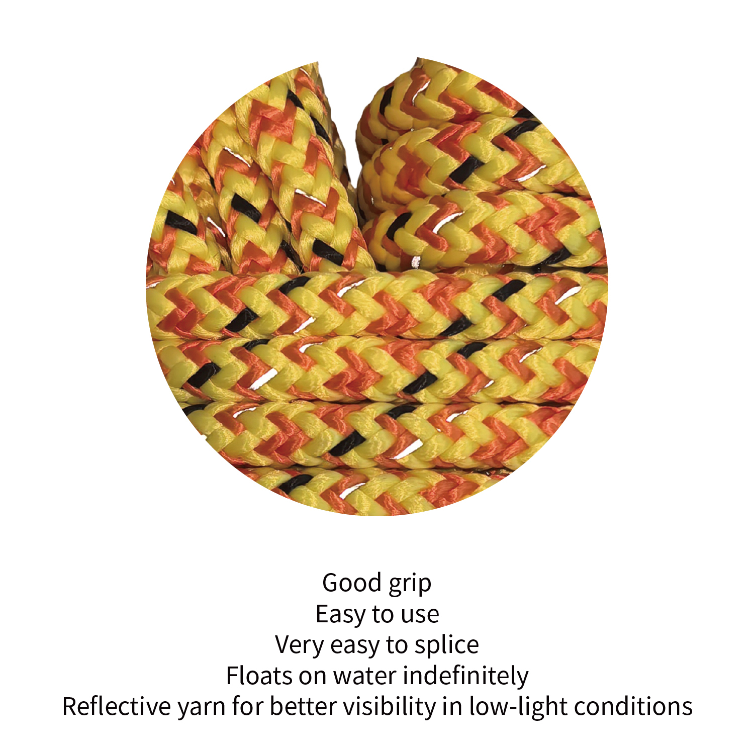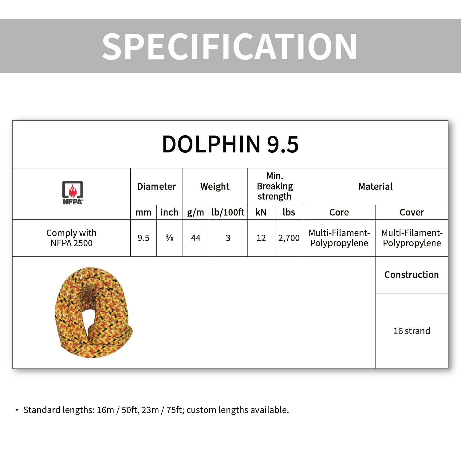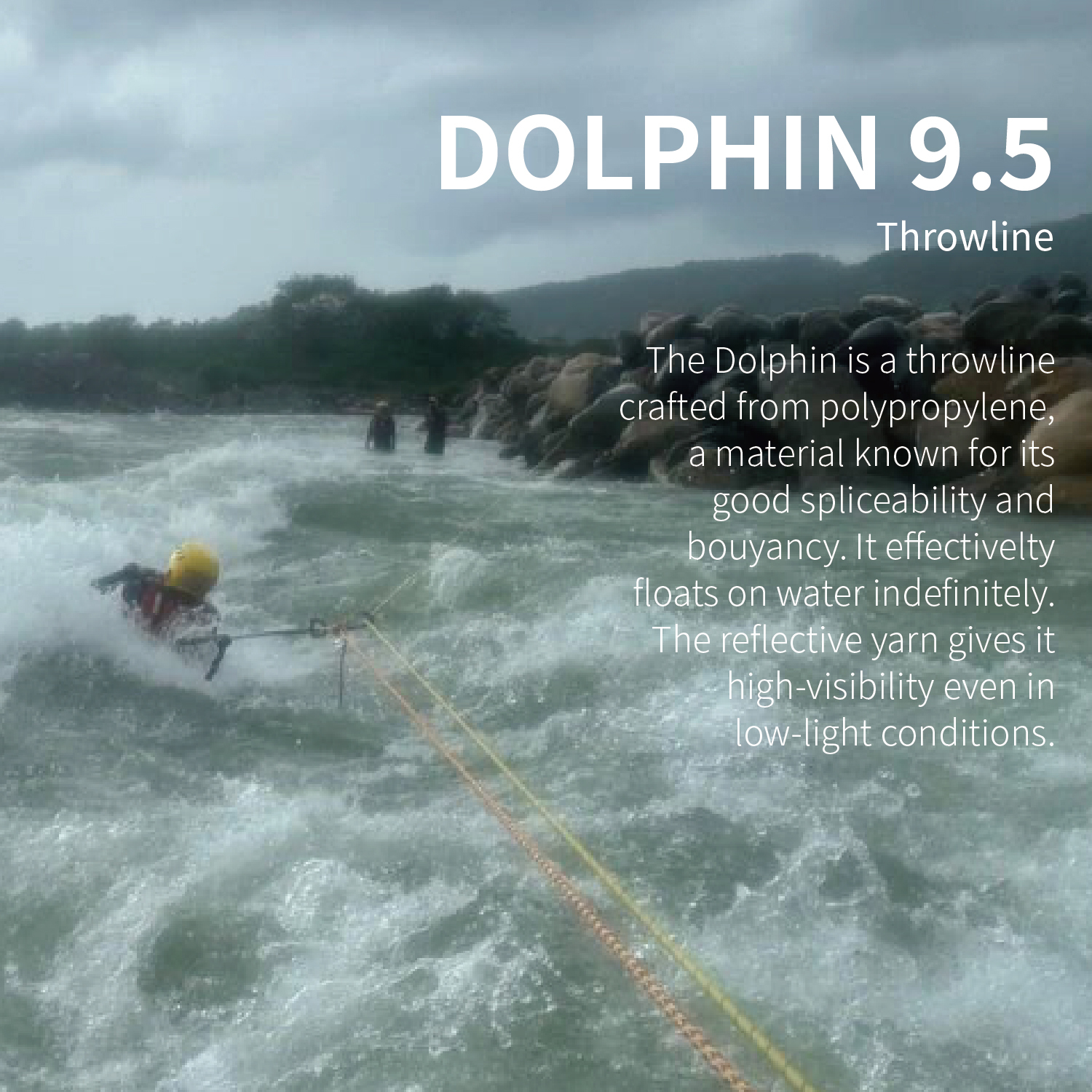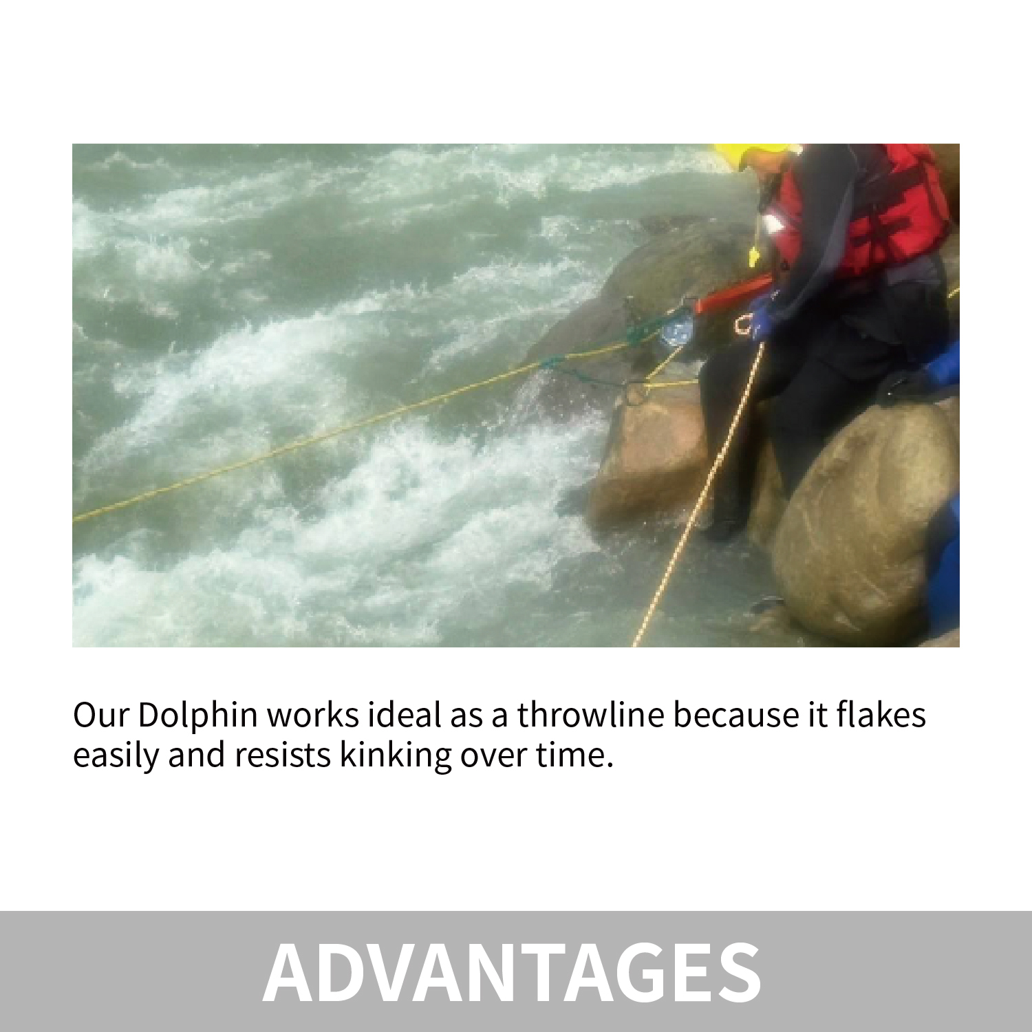 The Dolphin is a throwline crafted from polypropylene, a material known for its good spliceability and bouyancy.