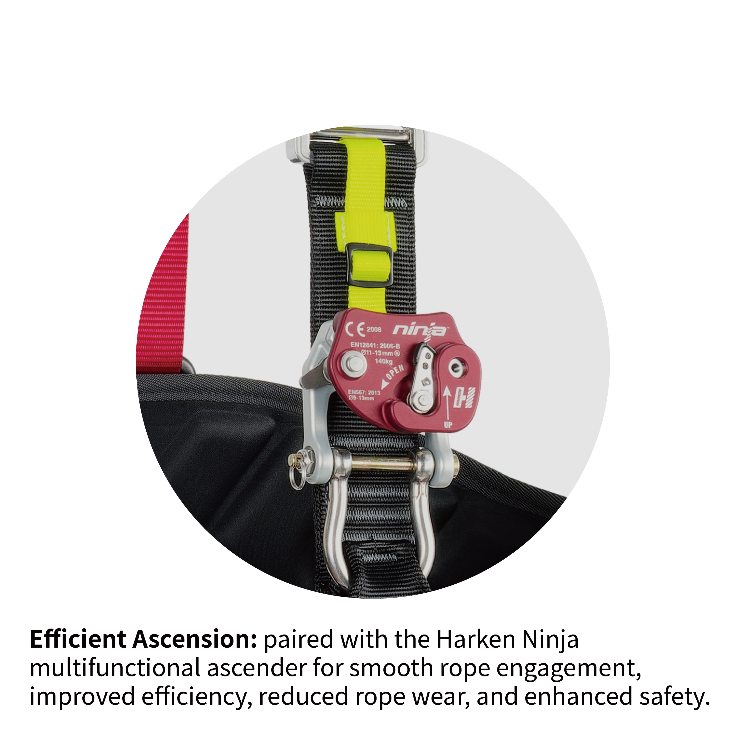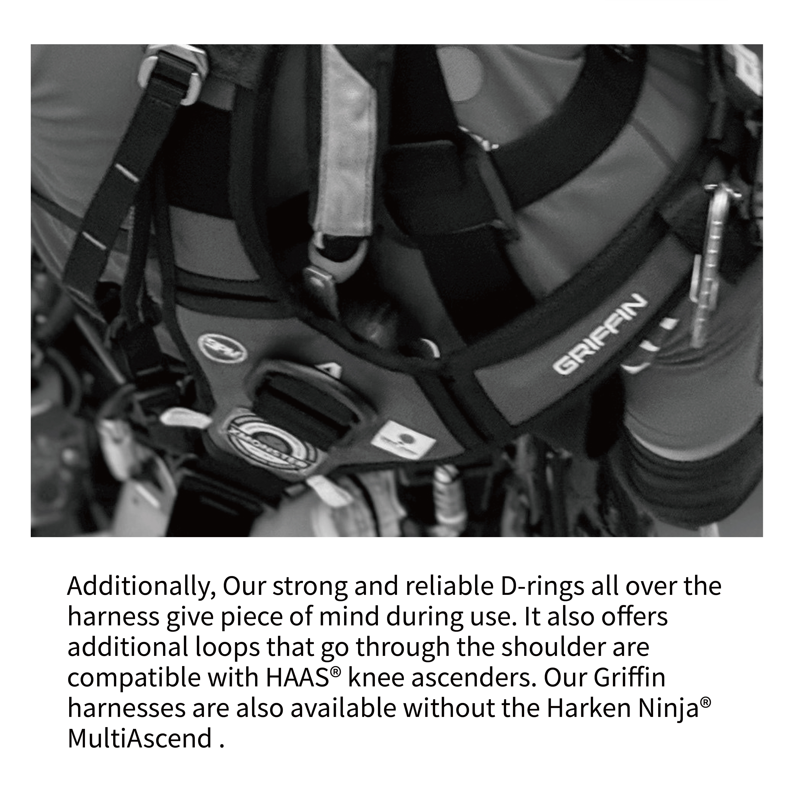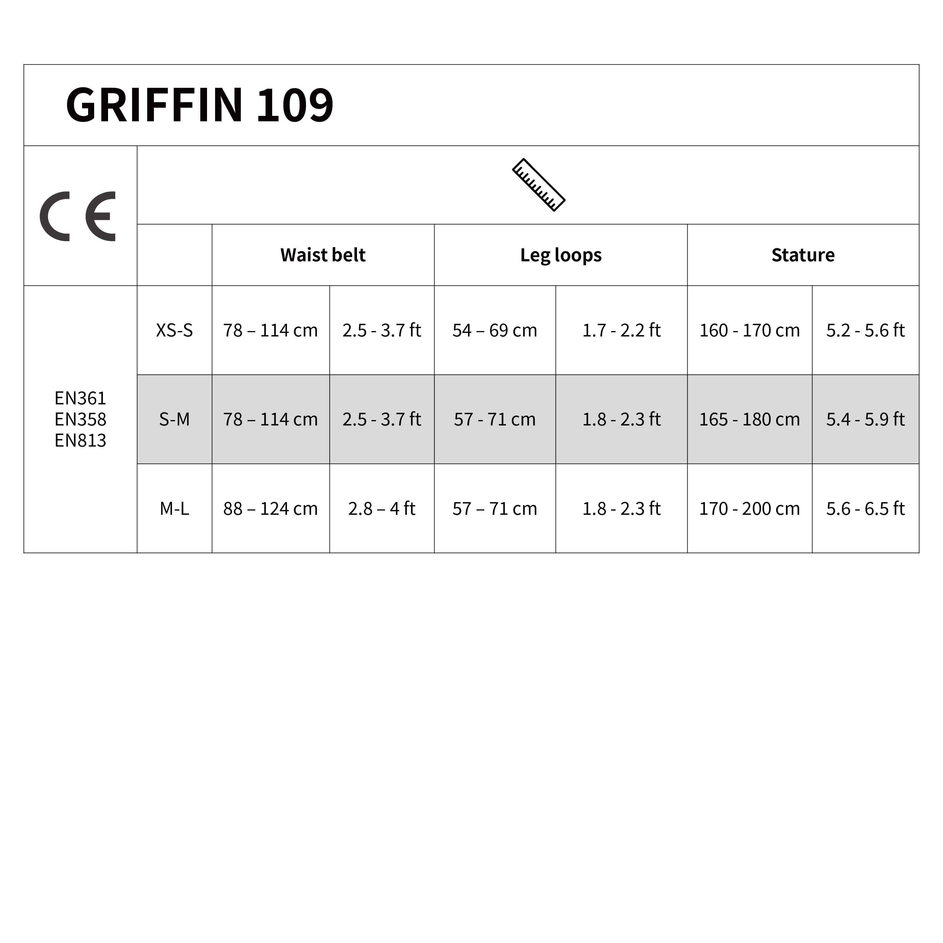 The Griffin 109 industrial rope access harness combines comfort, efficiency, quick donning a doffing, and convenient adjustability.