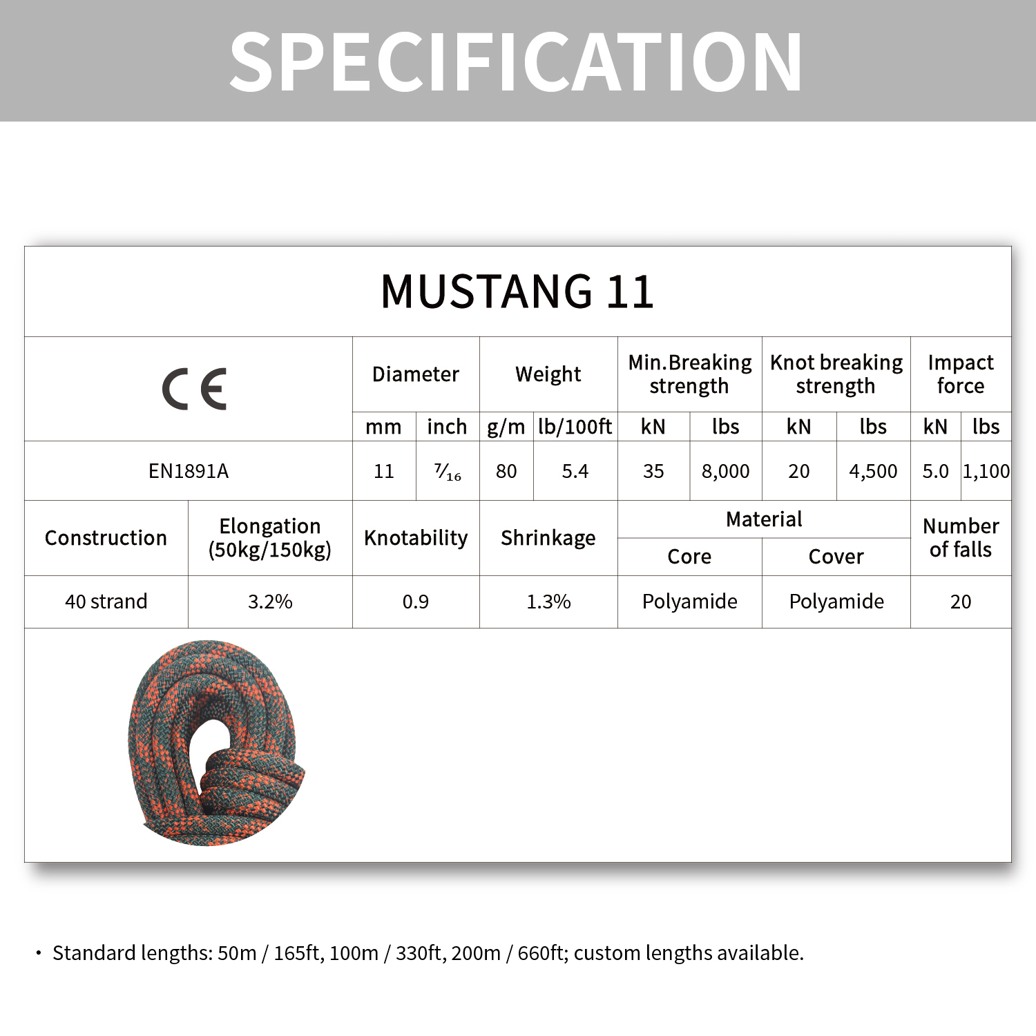 Our Mustang 10.5 & 11 is designed with high-quality, high-tenacity 100% polyamide fibers. It features a perfect balance of high-strength while still having enough elongation for impact absorption.