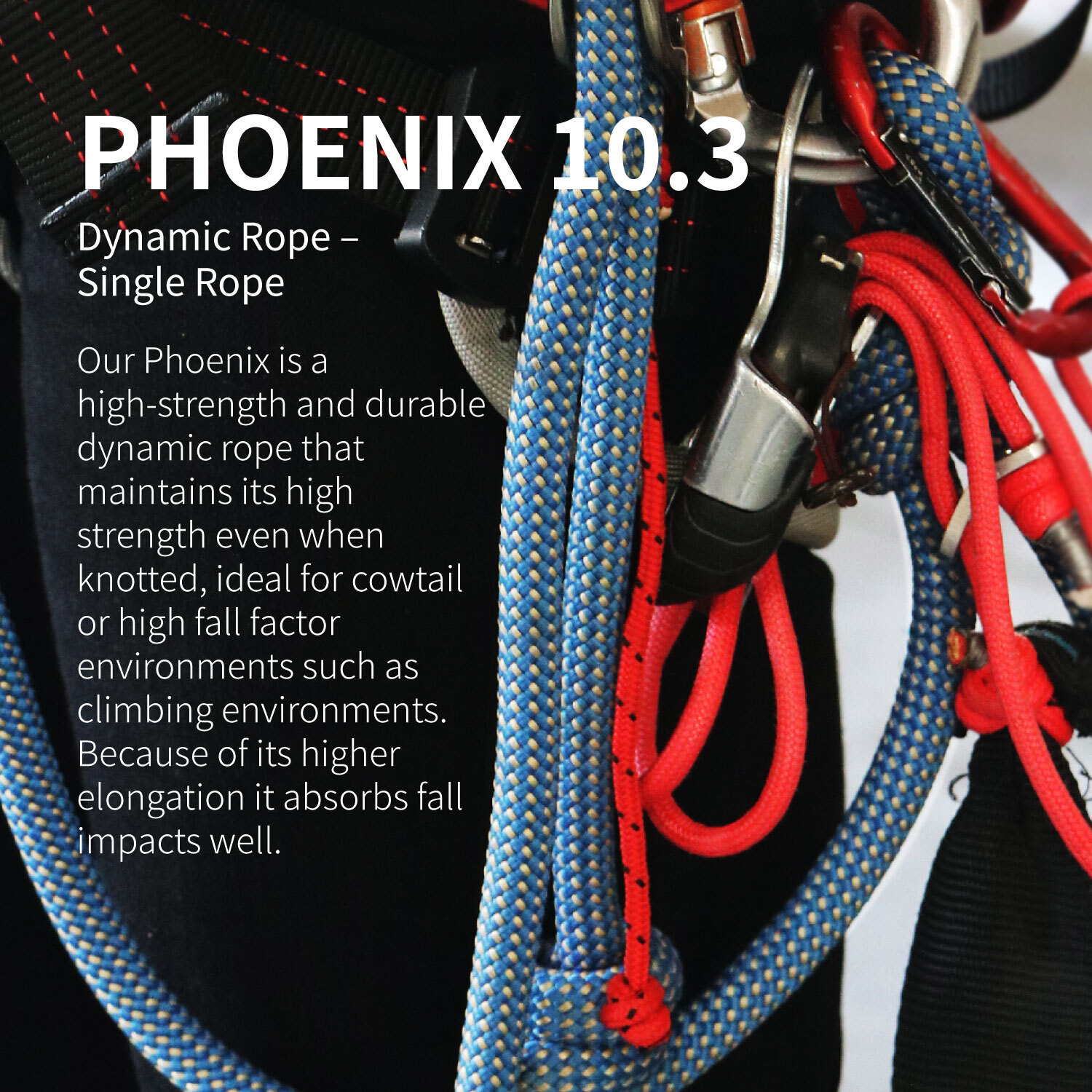 Our Phoenix is a high-strength and durable dynamic rope that maintains its high strength even when knotted.