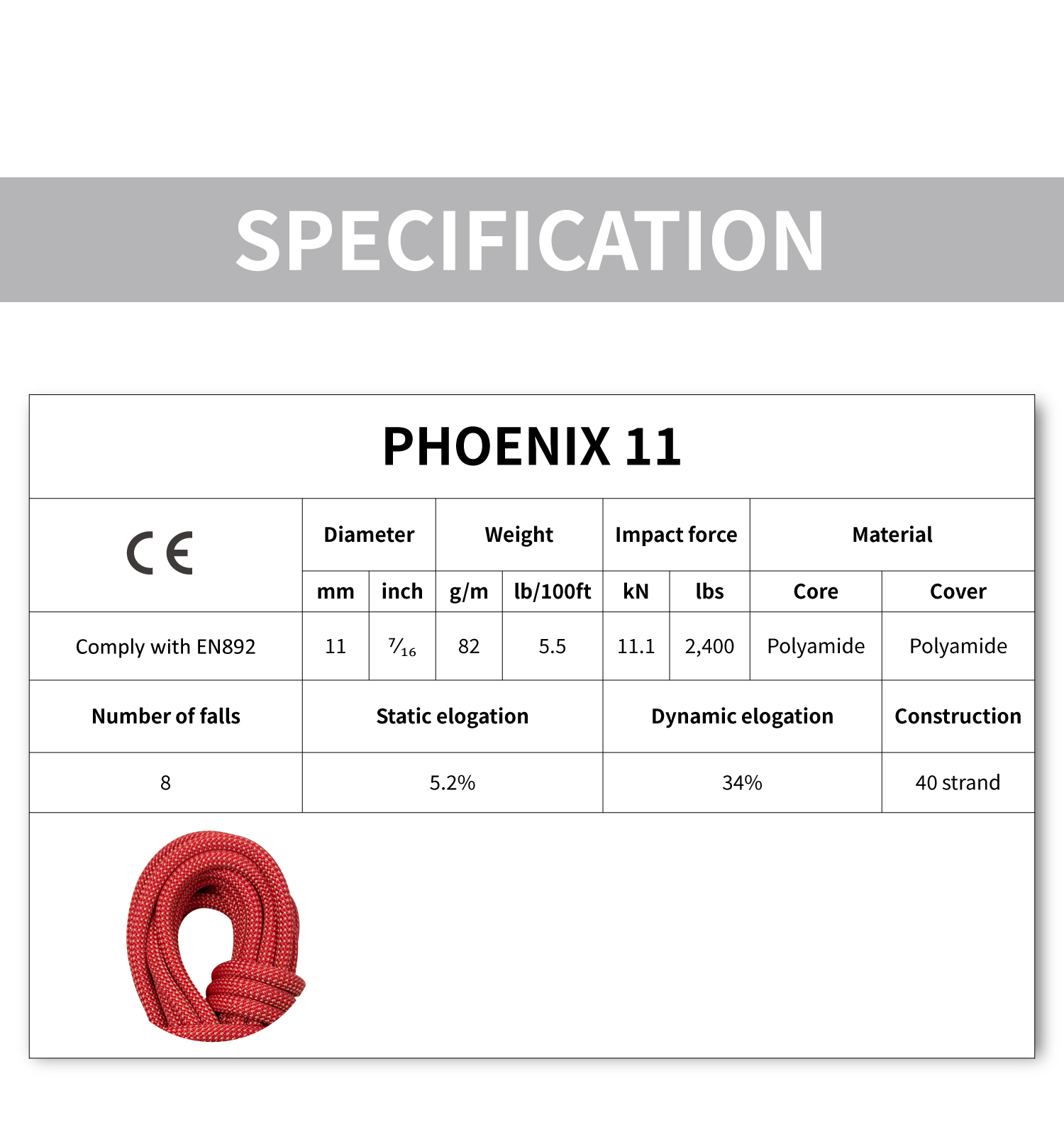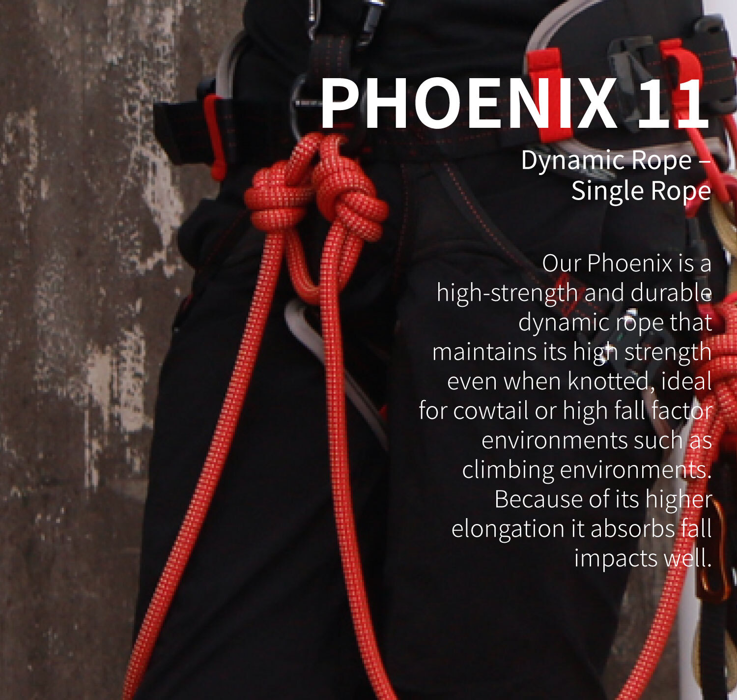 Our Phoenix is a high-strength and durable dynamic rope that maintains its high strength even when knotted.
