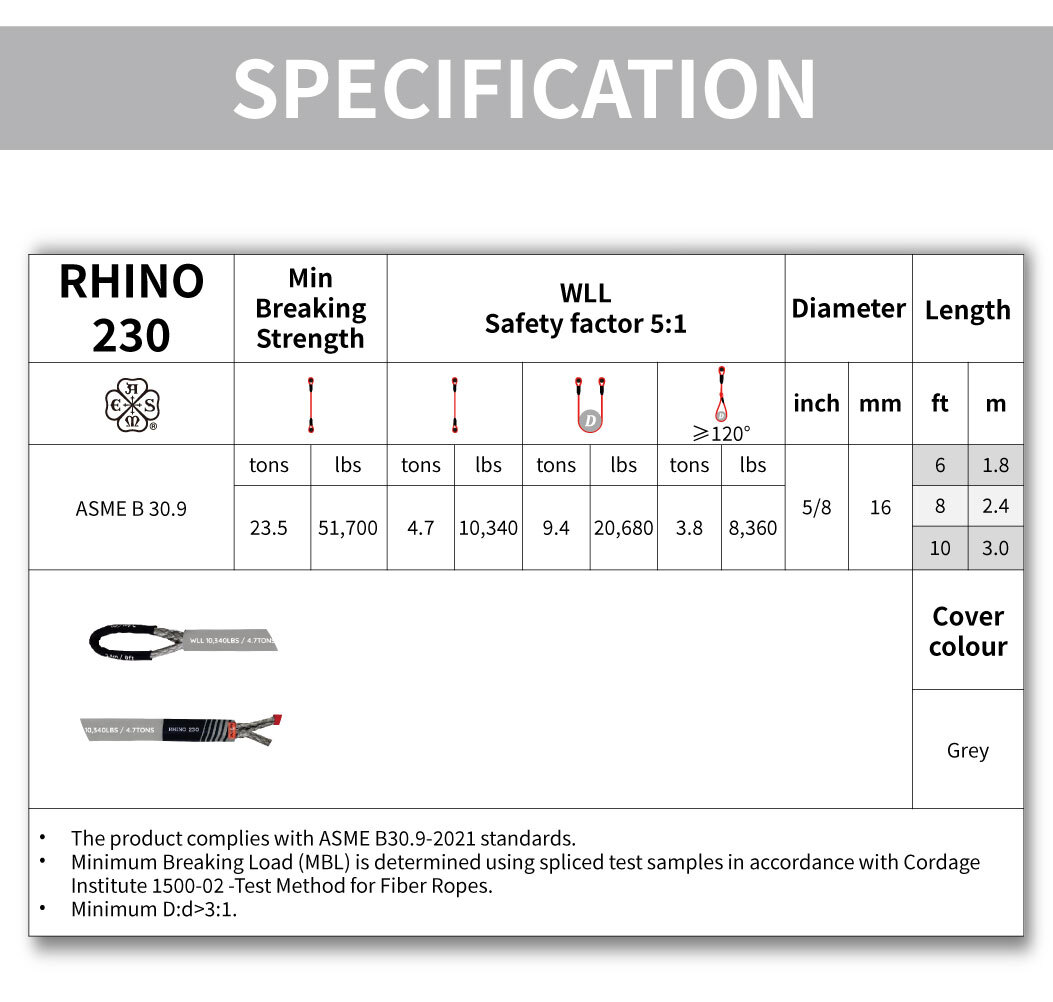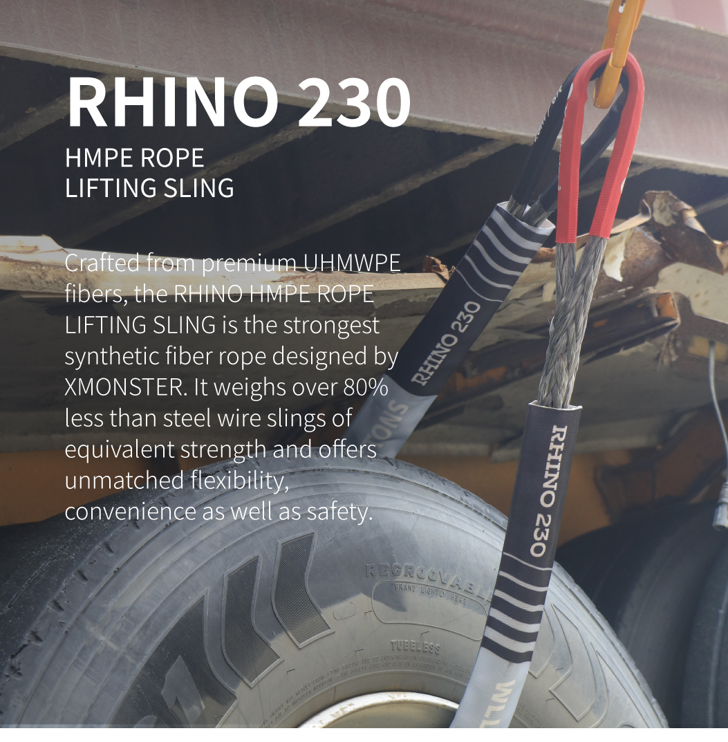 Crafted from premium UHMWPE fibers, the RHINO 230 lifting sling is the strongest synthetic fiber rope designed by XMONSTER.