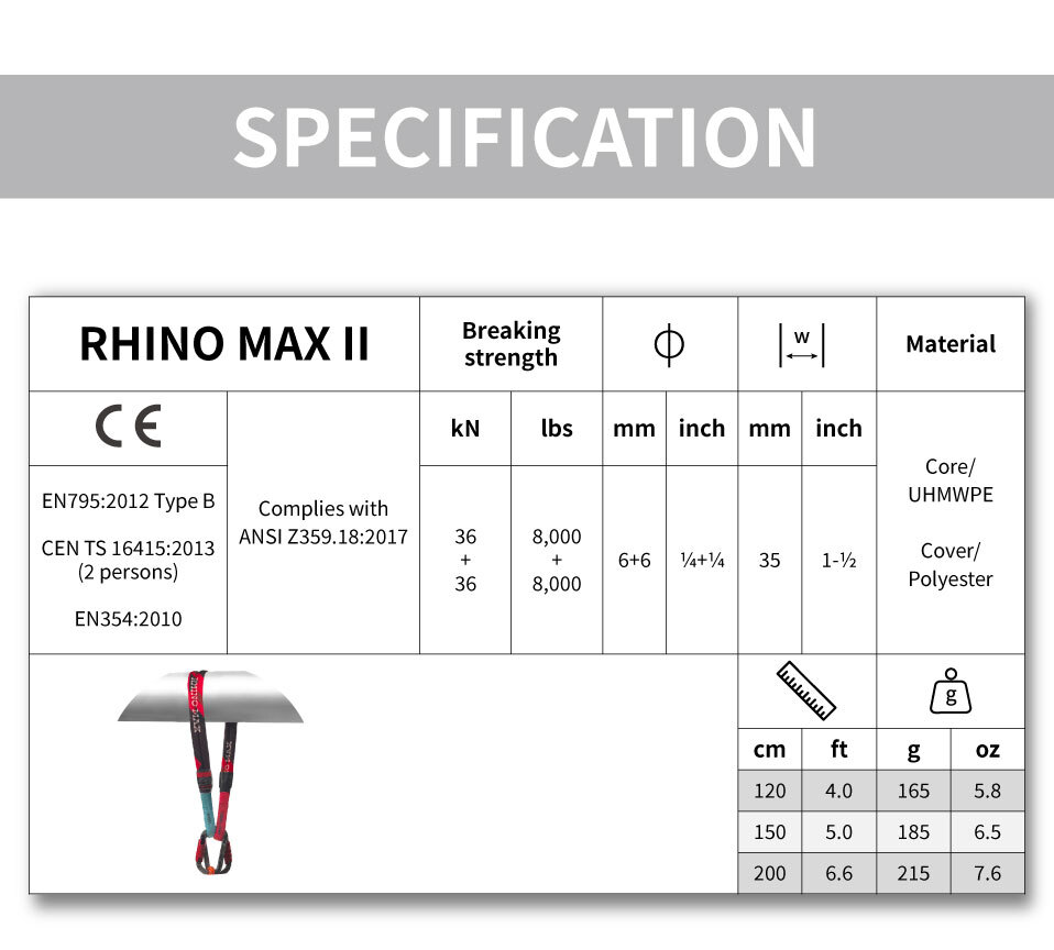 The Rhino MAX II is designed to provide dual protection as an anchor sling.