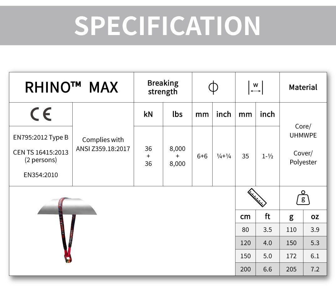The Rhino™ MAX is designed to provide dual protection as an anchor sling.