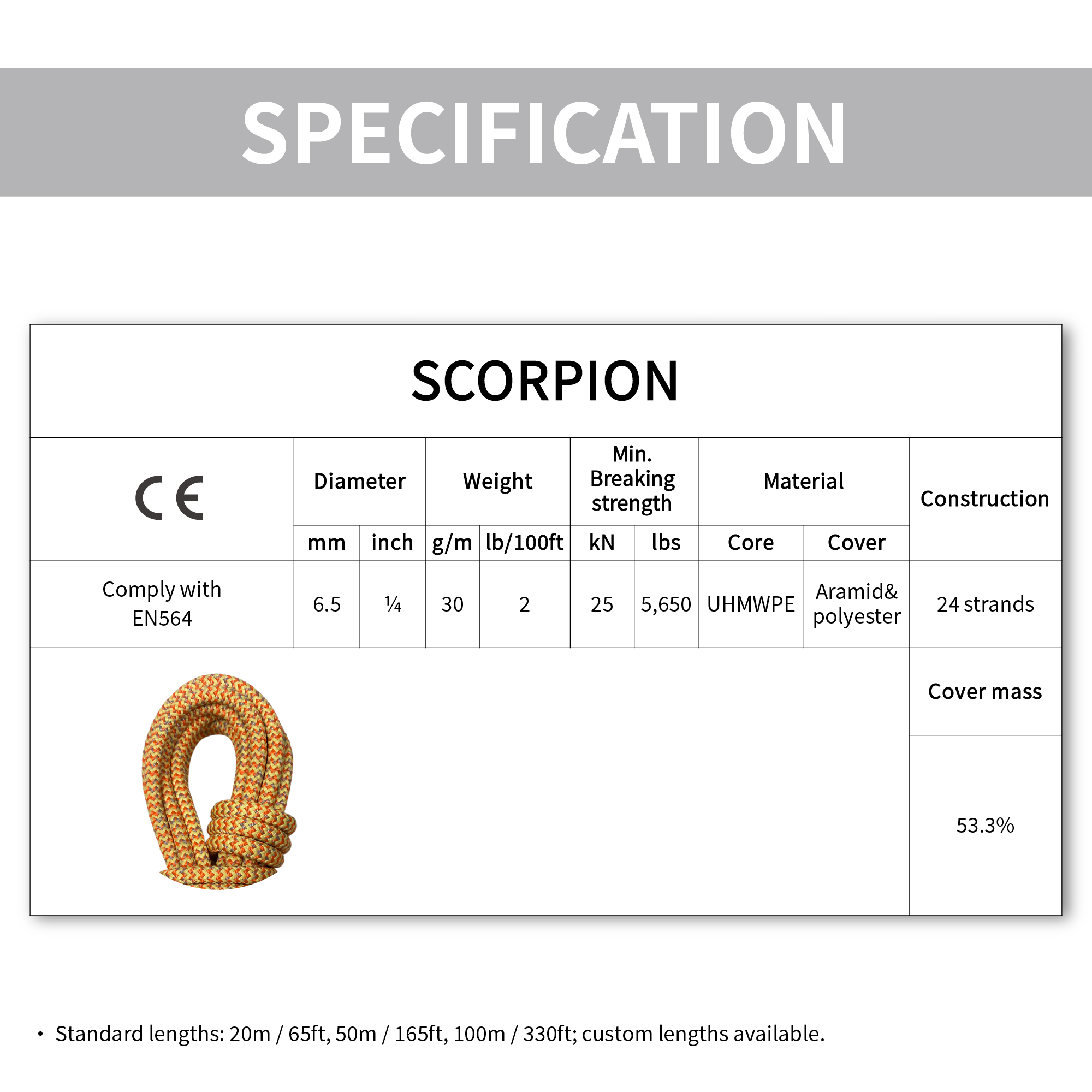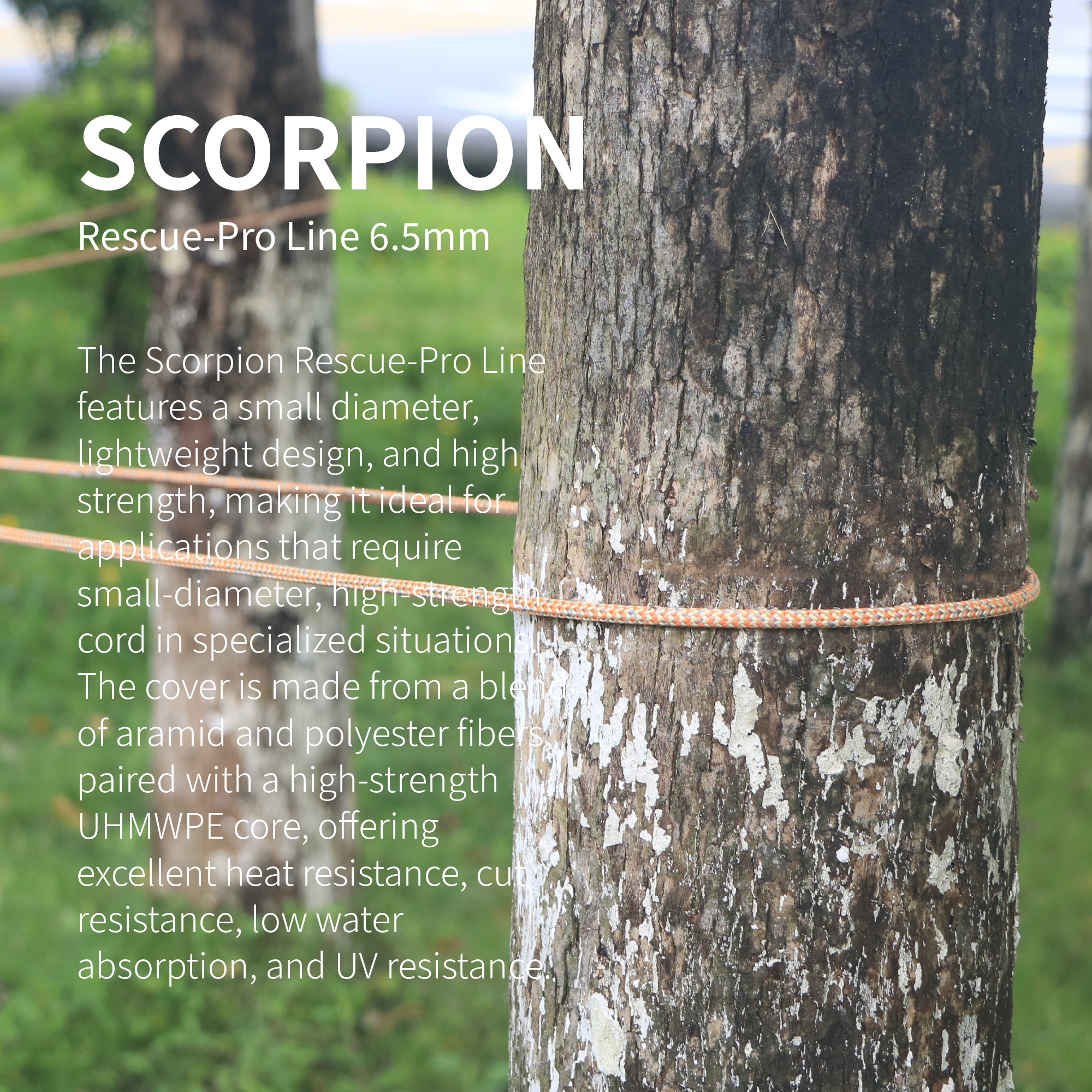 The Scorpion Rescue-Pro Line 6.5mm features a small diameter, lightweight design, and high strength, making it ideal for applications that require small-diameter, high-strength cord in specialized situations.