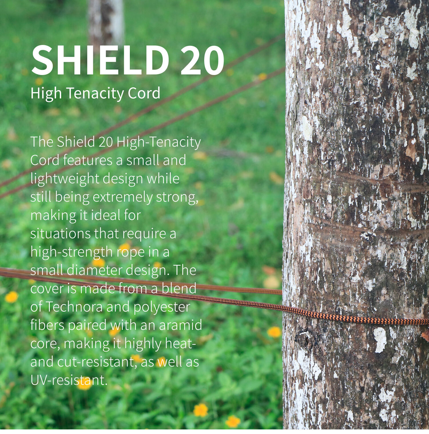 The Shield 20 High-Tenacity Cord features a small and lightweight design while still being extremely strong, making it ideal for situations that require a high-strength rope in a small diameter design.