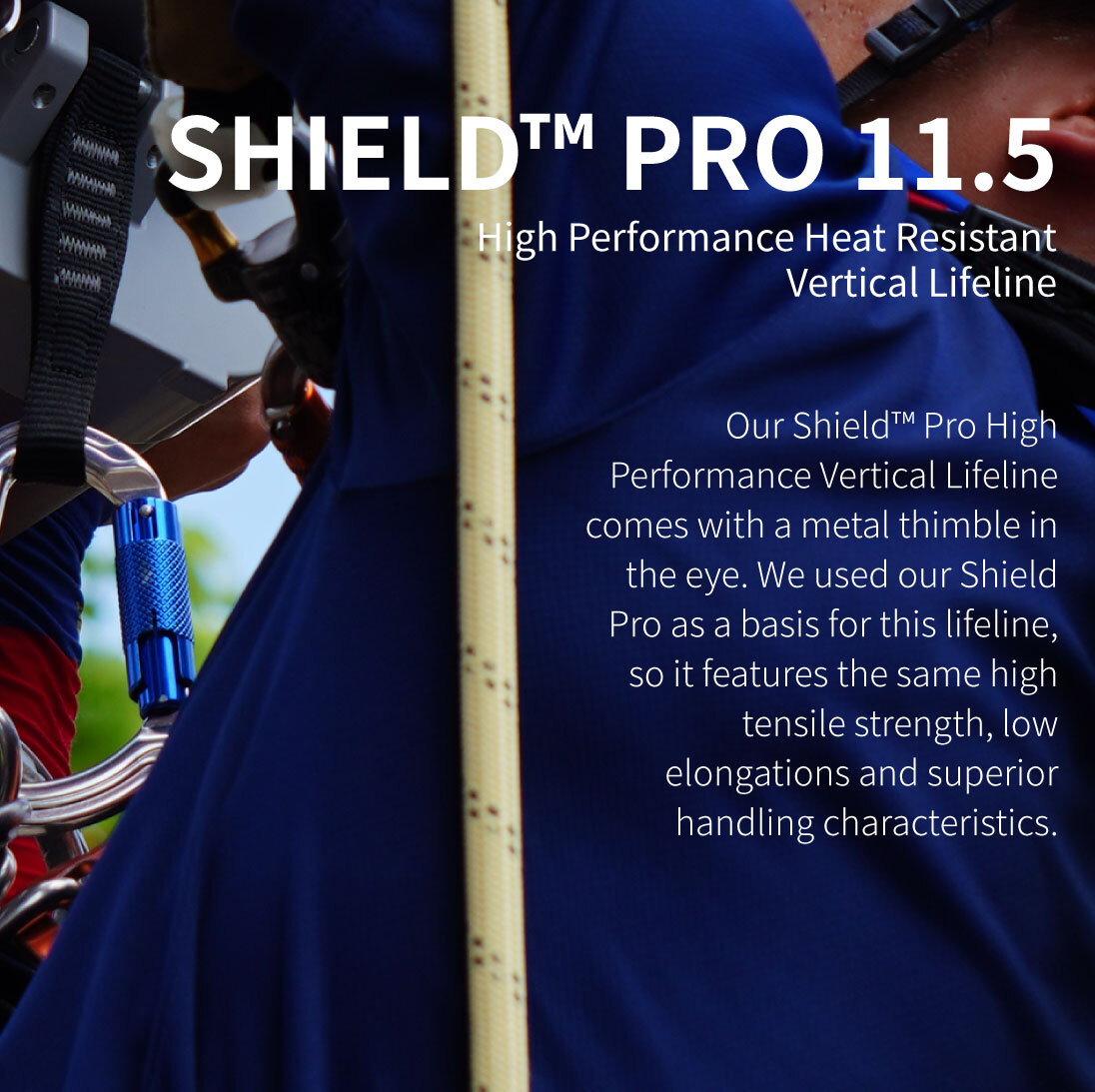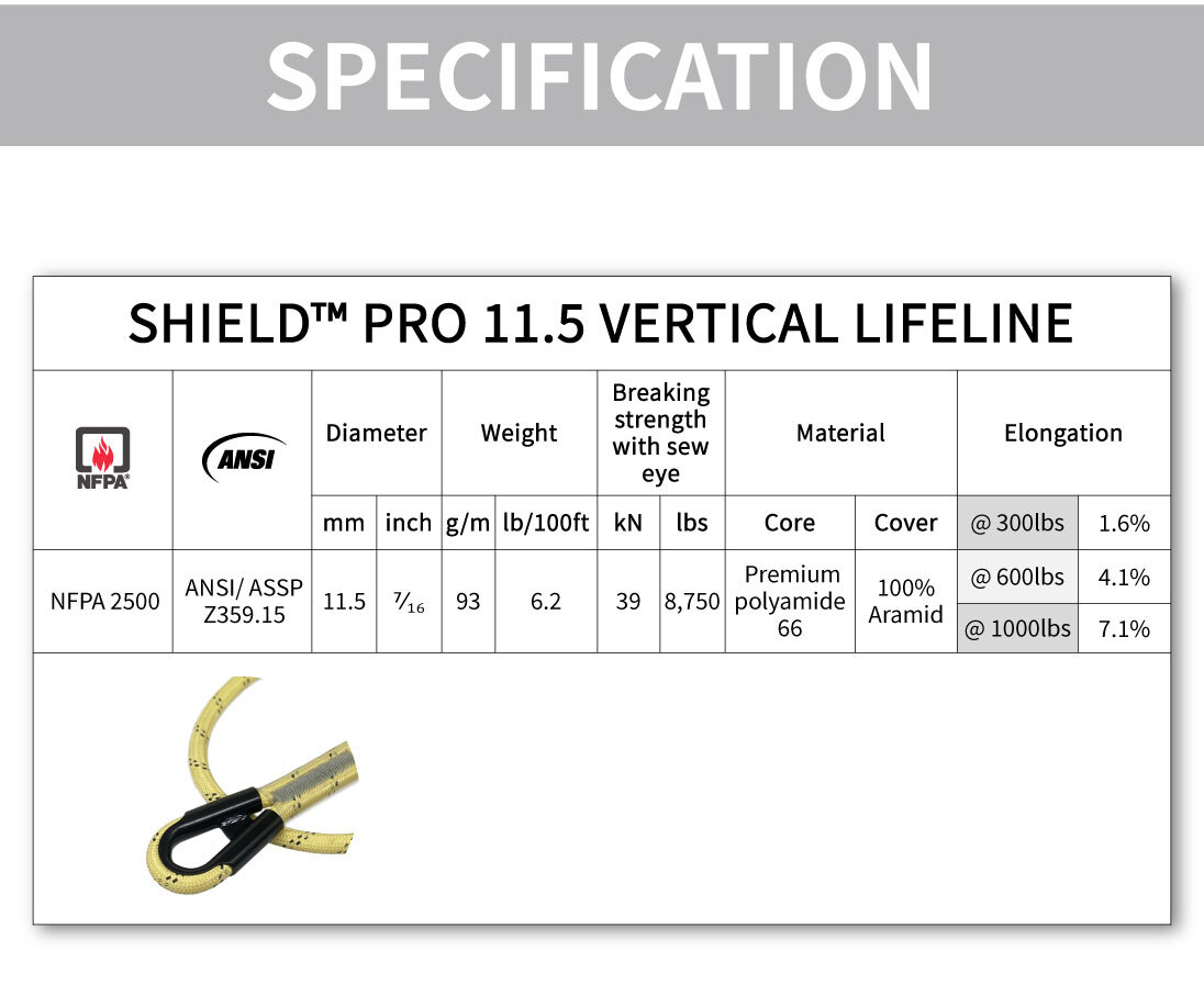 Our Shield™ Pro High Performance Vertical Lifeline comes with a metal thimble in the eye.