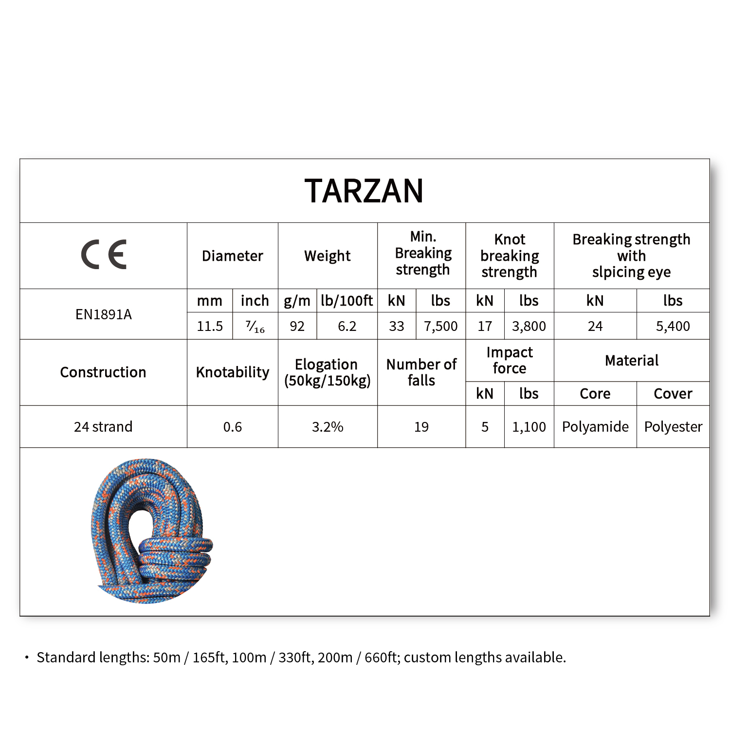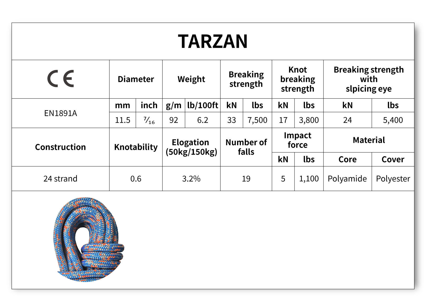Tarzan 11.5mm is designed with a combination of Polyester cover and a Polyamide core for a strong and flexible structure.